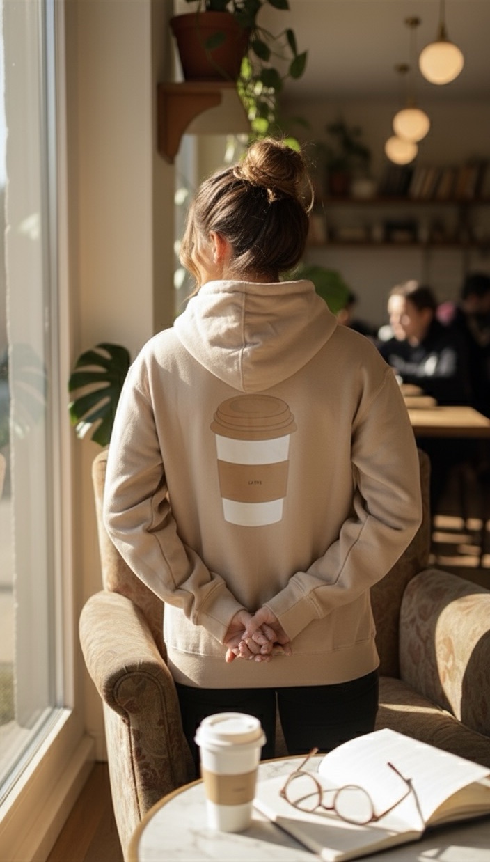 Caffiene & Daydream Aesthetic Beige Hoodie